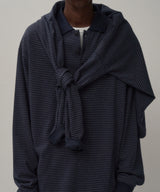 ややオーバーサイズな、ボックスシルエットが特徴の長袖ボーダーポロシャツ。袖は2枚袖になっており、立体的なシルエットになっています。