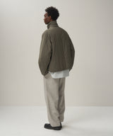 身幅に対して、着丈がやや短めの、スッキリとした佇まいが特徴のハリントンジャケット。裏地には高密度のナイロンタフタを使用し、軽い着心地と迫力あるシルエットを実現しています。また、中綿にはウールポリエステルを使用しています。