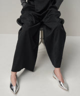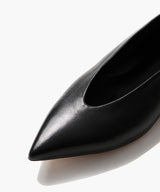 オリジナルデザインのイタリアンレザーを使用したフラットシューズ。革靴職人が多く集まる街、ベネチアにて名だたる老舗メゾンの靴を木型からつくる工房で製作しています。履き心地のために、底の中材にクッション性のある素材を採用。三角に尖った爪先と、甲のオープンなシルエットが細くシャープに仕上がっているのが特徴です。シンプルなデザインと上質なイタリアンレザーの組み合わせは甘くならず、ATONの服と心地よいコントラストで馴染みます。イタリアで国民的に愛されたバレエダンサー、CarlaFracciをイメージしてCarla(カーラ)というニックネームをつけました。