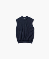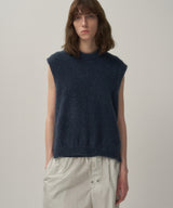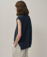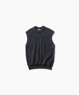 詰まった襟ぐり形状のレギュラー丈のベスト。サイドスリット入りでボトムとのバランスもとりやすく、インナーにTシャツやシャツを入れても、合わせやすい肩幅設計です。