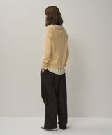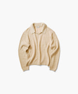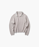 ゆったりとした身幅とボトムを選ばずに着れるレギュラーな着丈の変形ポロ衿ニット。小さめのV開きにポロ衿をつけたような衿ぐりで、カジュアルになり過ぎず着用できます。中にシャツやTシャツをインしても、1枚でも着られるアイテム。