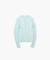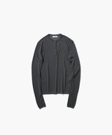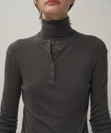 タイトシルエットのヘンリーネックプルオーバー。インナーとしても、ボリュームのあるボトムのトップスとしても重宝するアイテムです。襟ぐりはニットの縫製ですっきりと仕上げているのでカットソーで作られたカジュアル感がない、上質なアイテムです。