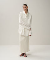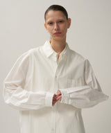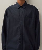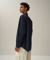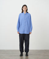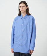 古着の3XLのシャツをベースに作成した、オーバーサイズシルエットのシャツ。製品で特殊なタンブラー乾燥を施した、洗いざらしのような雰囲気が特徴です。ドレスシャツ工場で、美しく見える仕上げにこだわりながら、ステッチはあえて環縫いを採用し、ダンガリーシャツのように仕上げています。タンブラー乾燥かけても縮ます、何度でも心地よいシワ感とドライなタッチが復元します。