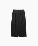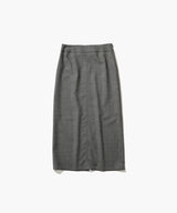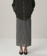 アンクル丈のストレートシルエットのスカート。後ろ中心にスリットでは無く、生地を重ねて巻きスカートのようなでディティールにして足さばきを良くしています。裏地をあえて短くして、素材の透け感が出るようにし、軽やかな印象に仕立てています。カジュアルなシャツや、ローゲージのニットを合わせて着ていただきたいアイテムです。