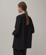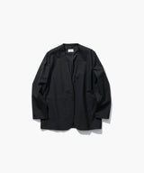 ボクシーなシルエットのカラーレスジャケット。シーム利用のポケット・袖口はボタンレスのプチベントとディティールをそぎ落としたデザインです。前端のカーブラインが特徴的で、重心を高く見せてくれます。薄手の袖裏付きでシーズンレスに着用可能です。