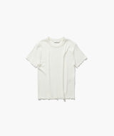 This knit material is made from high-twist yarn made from Indian extra-long staple cotton. A special process is added at the spinning stage to achieve a beautiful look with a slightly rough texture. This ATON original yarn features excellent water absorbency and quick-drying properties due to the high-twist yarn, as well as a glossy feel and good drape.