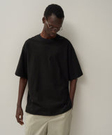 This T-shirt features a slightly oversized box silhouette. The neck is tightly closed with milled fabric, making it neither too clean nor too casual, making it suitable for any occasion.