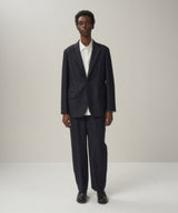 This wool material was reprinted by craftsmen in Aisai City, Aichi Prefecture, from a fantastic blazer material that was produced by special order for a long-established American brand in the 70s and 80s. The material, which took about one year to produce, is not produced by the current highly productive French spinning method, but by the English spinning method, in which the process of weaving is repeated by twisting the wool little by little while stretching the crimps of the wool. The resulting hand-spun yarn is the ultimate ATON original jacket material that maximizes the original texture of wool and enables all-season wear even though it is not high-twisted summer wool.