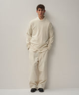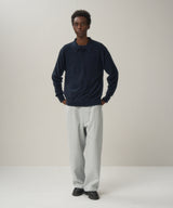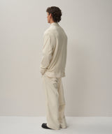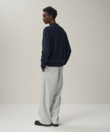 The slightly thick twill material is woven slowly in Hamamatsu City, Shizuoka Prefecture, using Egyptian finx cotton, and a special dyeing method is used in Ashikaga City, Gunma Prefecture, where the fabric is rubbed thoroughly for a long time. This original material combines the original fluffiness of cotton from the dyeing process, a gentle feel against the skin, and the luster of extra-long staple cotton from the raw cotton.