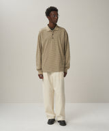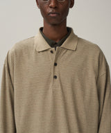 ややオーバーサイズな、ボックスシルエットが特徴の長袖ボーダーポロシャツ。袖は2枚袖になっており、立体的なシルエットになっています。