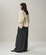 フランスのノルマンディー地方産のヘンプによる奥行のある美しい乳白色は、オーガニックヘンプの無漂白・無染色によるものです。岐阜県一宮市にて、高密度に織り上げ、スウェード起毛をする事により、ハリ感と冬でも暖かく体温を保持してくれる、ATONオリジナル素材です。