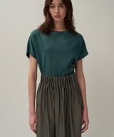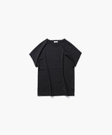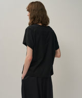 This cap-sleeved T-shirt wraps around the shoulders and arms.The design eliminates stitching, so it can be worn without giving a casual impression.