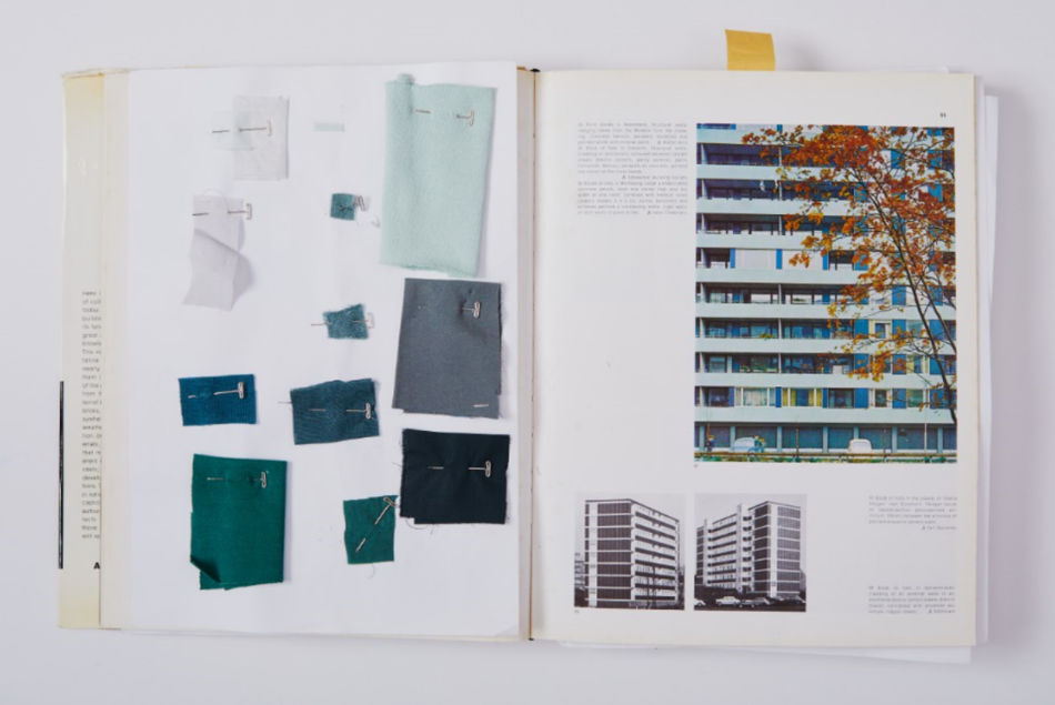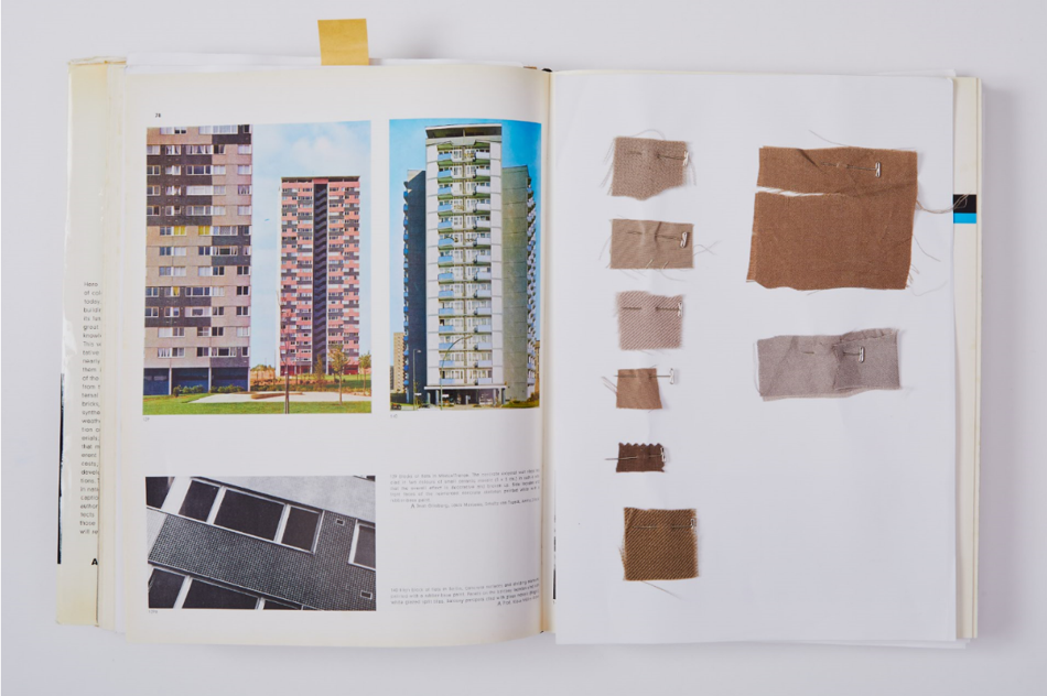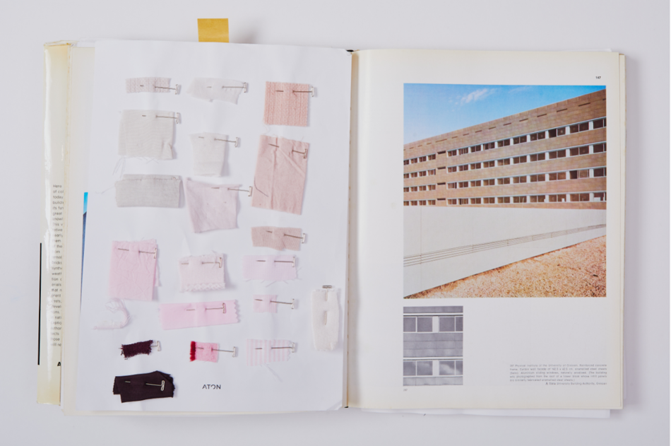 The colour imagery for this season was inspired by a German publication of architectural literature from the 1960s called COLOUR AND ARCHITECTURE. The shades of blocks and tiles used on the exteriors of the buildings in the book are beautifully coloured in light tones of beige, yellow, blue, green and pink. We focused on the faded tones created by the friction of rocks and stones washed away by the action of water in the country or region.