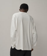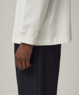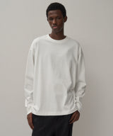 This long-sleeved T-shirt features a slightly oversized box silhouette. It is thick and non-transparent, and the neck is tightly closed with milled fabric for a clean look.