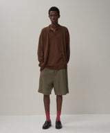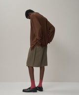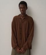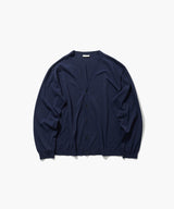 通常よりやや太めの前立てと、オーバーサイズなシルエットが特徴的なカーディガン。16ゲージを採用し、度詰めでしっかりとした肉感と着心地に仕上げました。裾のリブが締まりすぎておらず、Tシャツの上からサラッと着用可能です。