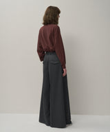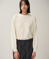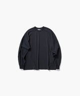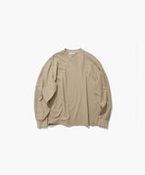 身幅に対して着丈が少し長めのオーバーサイズシルエットの長袖Tシャツ。袖口はフライスで切り替えたデザインで、袖をたくし上げた際に雰囲気の出るボリューム感になっています。