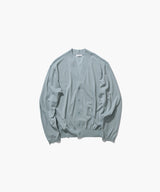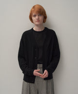 通常よりやや太めの前立てと、オーバーサイズなシルエットが特徴的なカーディガン。ボタンを留めてVネックプルオーバーとしても着用できる胸元の開きです。同素材の半袖クルーネックと合わせてアンサンブルのようにも着用できます。