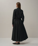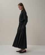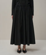 This maxi skirt features generous gathers for a voluminous silhouette. The lustrous cotton fabric creates a beautiful texture, showcasing ATON's signature craftsmanship. The waist is adjustable with elastic and a drawstring, allowing for a relaxed fit.