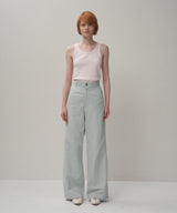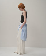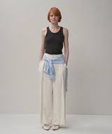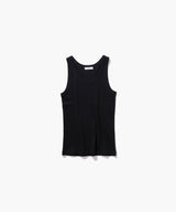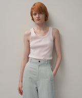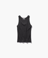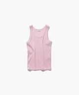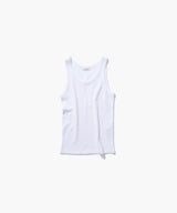 インナー対応もできるレギュラーフィットシルエットのタンクトップ。深めの襟ぐりの開きとトリミングリブの太さがアンバランスで、ATONらしいタンクトップです。