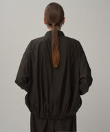 This coach jacket features a voluminous back silhouette. Adjust the length and shape by tightening the drawstrings at the hem and cuffs. Crafted from water-repellent fabric, it doubles as a packable rain jacket for easy carrying.