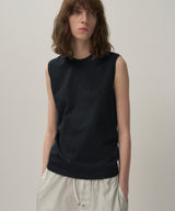 A sleeveless T-shirt with a slightly inside cuff that makes your upper arm look beautiful.