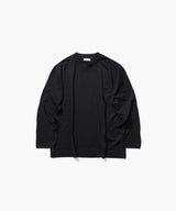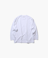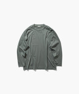 ATON's standard long sleeve T-shirt with oversized features. It has a roomy silhouette, and the ratio of length to width is slightly longer, giving it a modish impression.