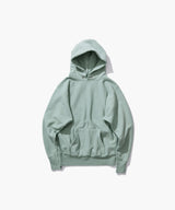 シャープな三角形のフードと、少し大きめのシルエットが特徴的なATON定番のフーディースウェット。袖口は力点を一点に集中させない様、リブをトライアングルに設計しており、機能を兼ね備えたデザインになっています。胸元に付いた、”A”マークは植毛フロッキーの為、剥がれること無くベルベットの様な手触りです。