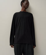 ボックス型のオーバーサイズシルエットが特徴の長袖Tシャツ。ネックはフライスでしっかりとつまっており、すっきりとした印象です。チクチクせず、家庭用洗濯機での可能です。