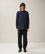 ベーシックなドレスシャツをオーバーサイズにしたスタンダードシャツ。すっきりとシャープな印象に仕上げています。洗いざらしでラフに着用ていただいても、また違った上品な雰囲気を味わえるATON定番のシャツです。
