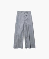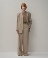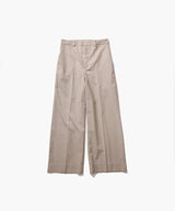 ノータックのワイドトラウザー。腰周りにゆとりを持たせながらも、タックが無いことでスッキリとしたシルエットに仕立てています。素材の表情と軽さが魅力のパンツです。